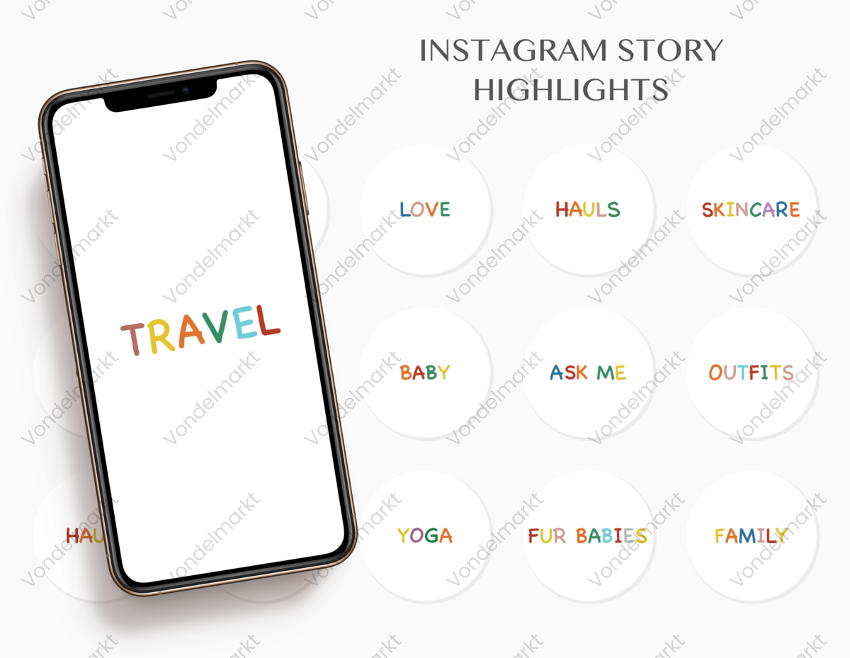 15 Lifestyle Instagram Highlight Icons for Bloggers and Influencers. White background with handwritten text.