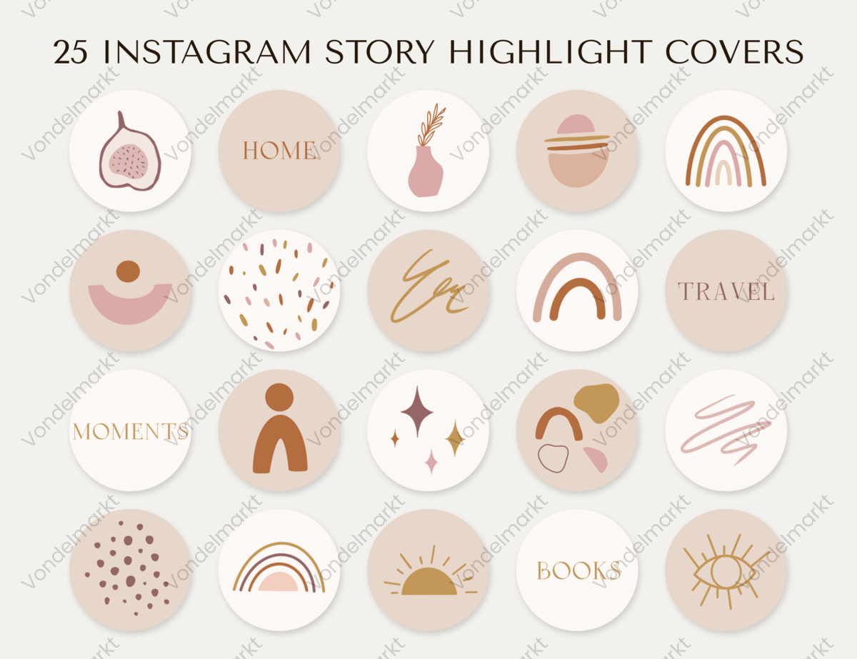 23 Lifestyle Instagram Highlight Icons for Bloggers and Influencers. Bright boho elements.