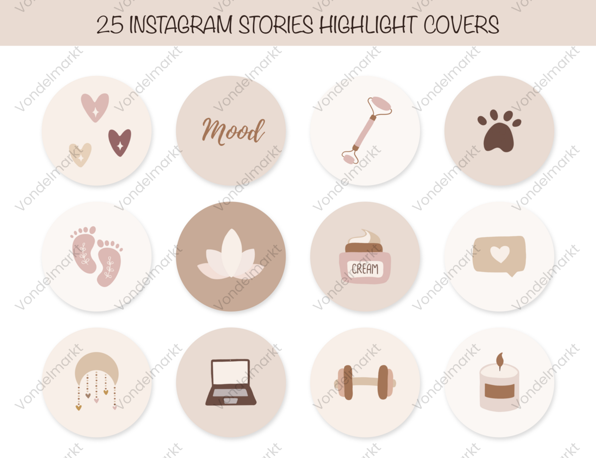 25 Lifestyle Instagram Highlight Icons for Bloggers and Influencers. Bright boho elements.