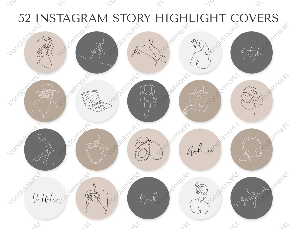 52 Lifestyle Instagram Highlight Icons for Bloggers and Influencers. Neutral background with elegant font.