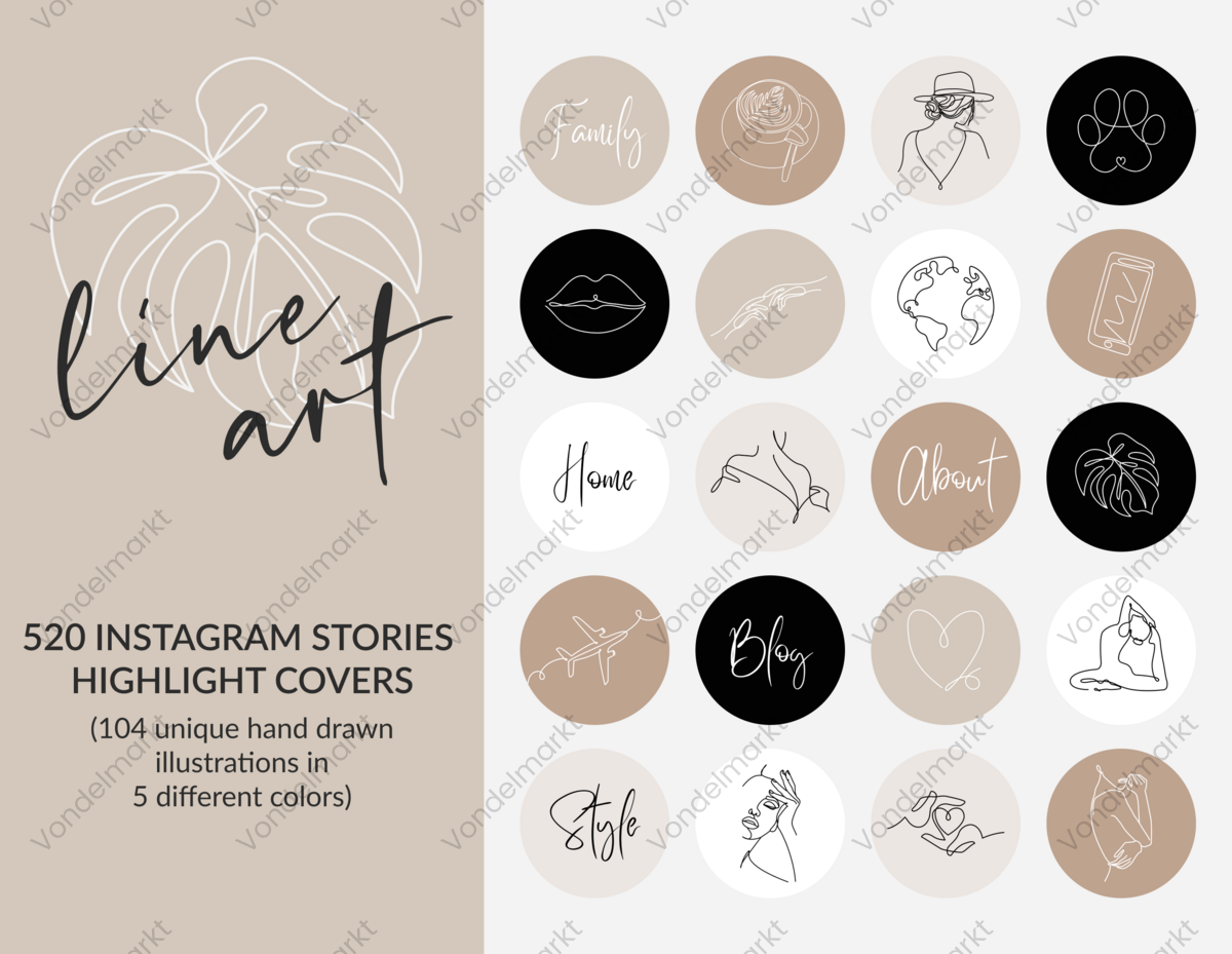 â‘ 520 Hand Drawn Line Art Instagram Story Highlight Cover Icons | Instant download!